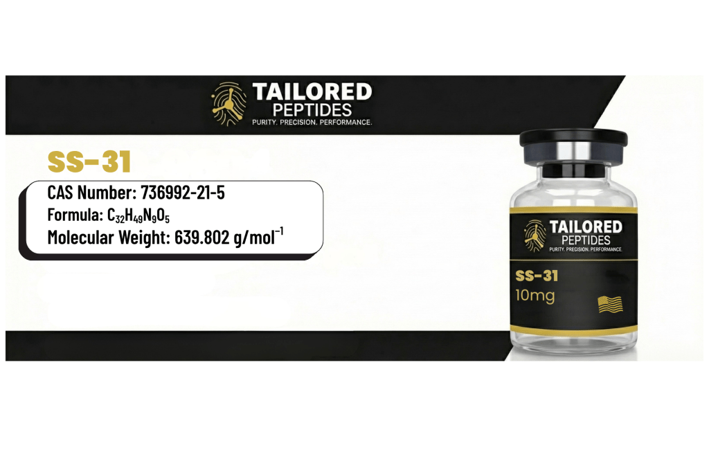 SS-31 (Elamipretide) is a mitochondria-targeted tetrapeptide designed to selectively bind cardiolipin within the inner mitochondrial membrane. In research settings, SS-31 is studied for its effects on mitochondrial bioenergetics, oxidative stress modulation, ATP production efficiency, and protection against mitochondrial dysfunction in cardiac, skeletal muscle, and metabolic disease models. For research use only.